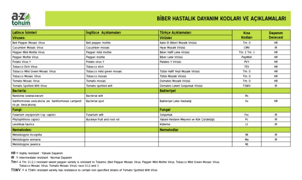 Biber Hastalık Dayanımları